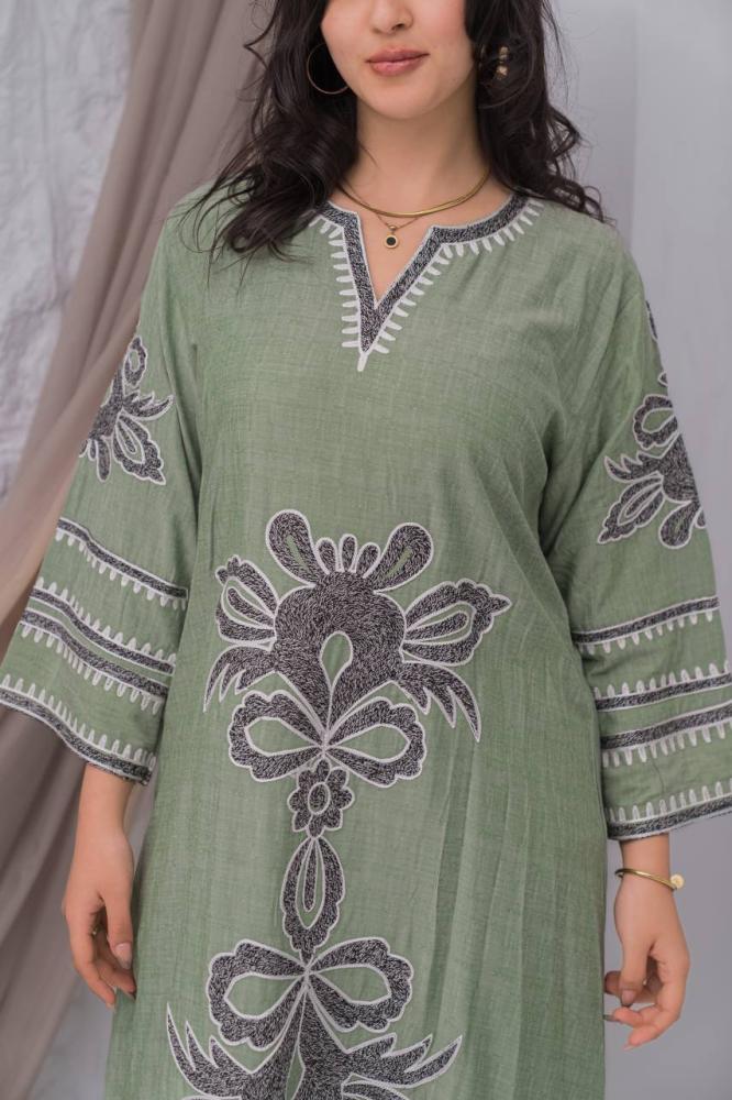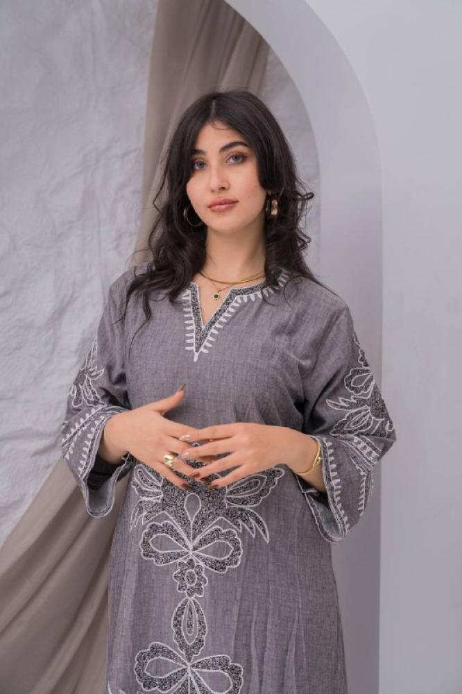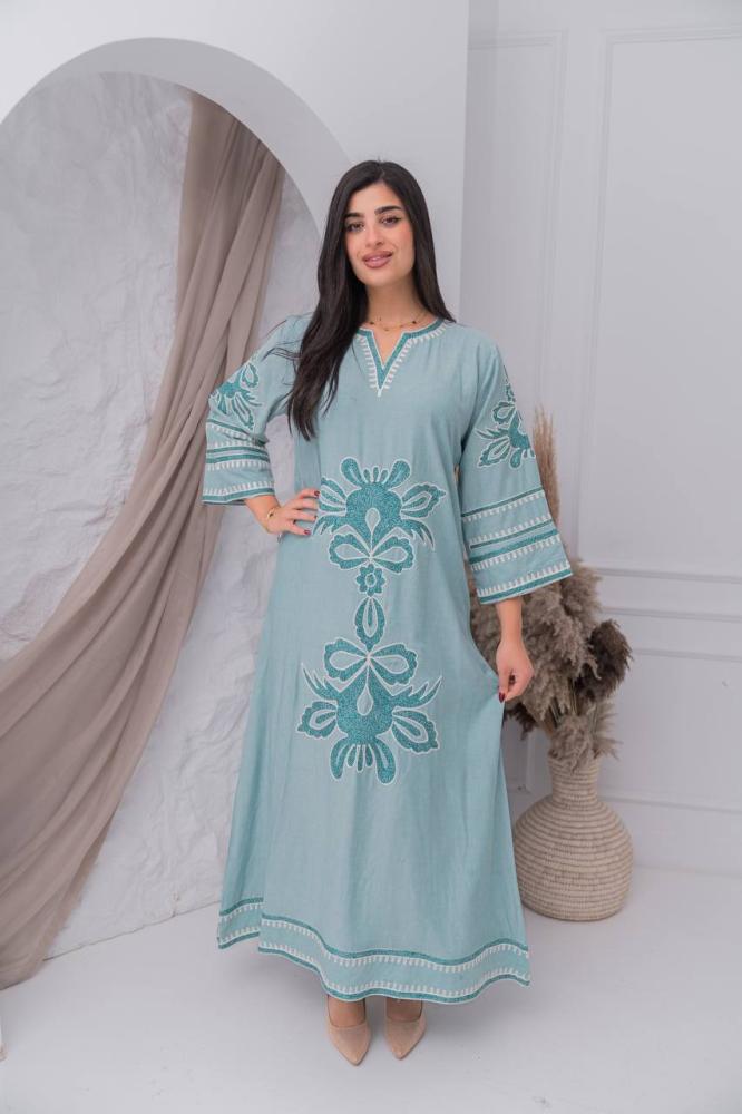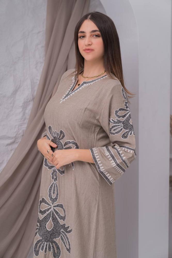 جلابية كتان تركي بتفاصيل دقيقه تضفي لمسة من الفخامة