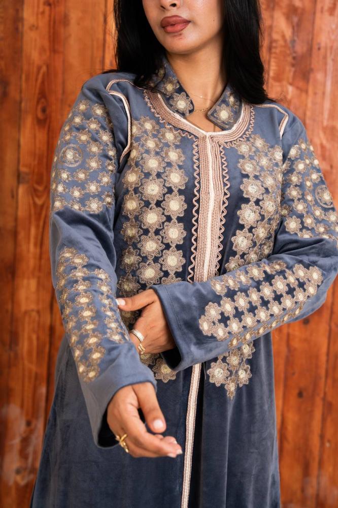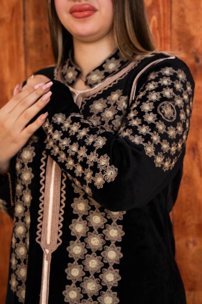 مخمل فاخر يلمع بنعومته وتطريز دقيق يعطيك فخامة من أول نظرة. ، يعكس أنوثتك بذوق راقٍ ولمسة ملوكية تلفت العيون.